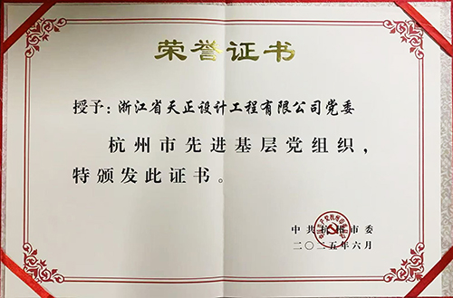 值此中國共產黨成立104周年之際,中共杭州市委表彰了杭州市優秀共產黨員、杭州市優秀黨務工作者和杭州市先進基層黨組織。中共浙江省天正設計工程有限公司委員會(以下簡稱天正設計黨委)榮獲“兩優一先-杭州市先進基層黨組織”光榮稱號。